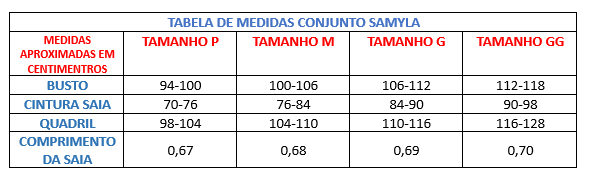 Dúvidas? Entre em contato pelo WhatsApp! Nossa equipe está sempre à disposição para te ajudar a brilhar com o Conjunto Samyla!