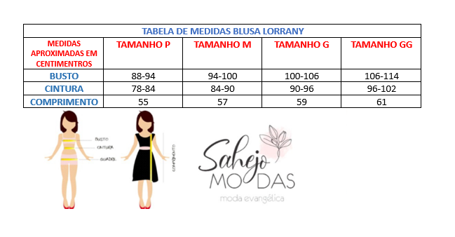 Se não servir, você possui 7 dias corridos após o recebimento para realizar a troca. Dúvidas sobre o tamanho? Fale conosco pelo WhatsApp, estamos prontos para ajudar você a brilhar com a Blusa Lorrany!